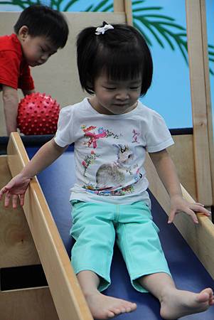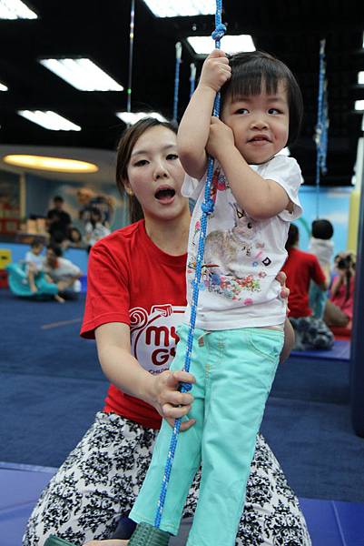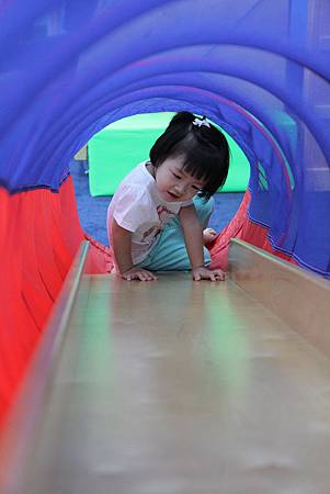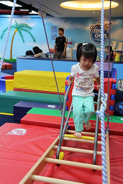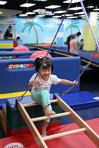 走平衡梯...這是懸空的 我還擔心她踩空跌倒...結果她堅持不讓我扶 不過 每一樣她總是玩得好開心呀!!