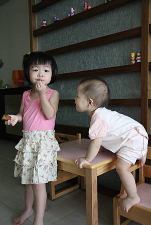 (我們看得出她想要拿最大的那根, 還故意又在她面前轉了轉, 想要轉移她的目標)