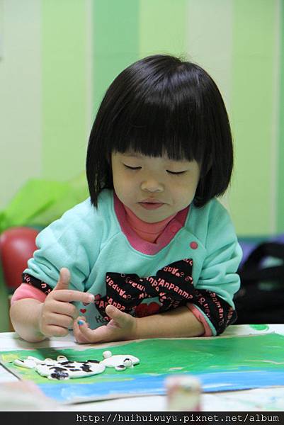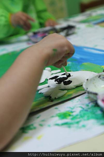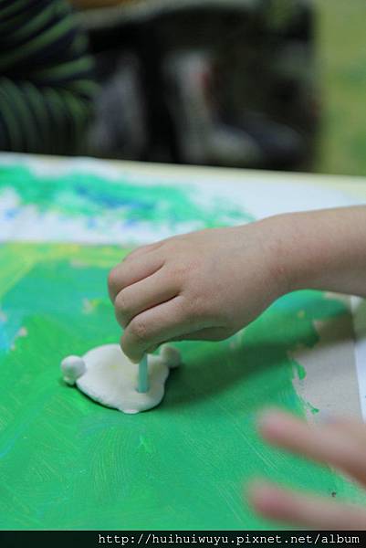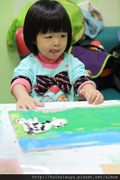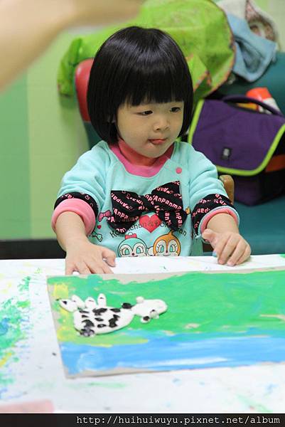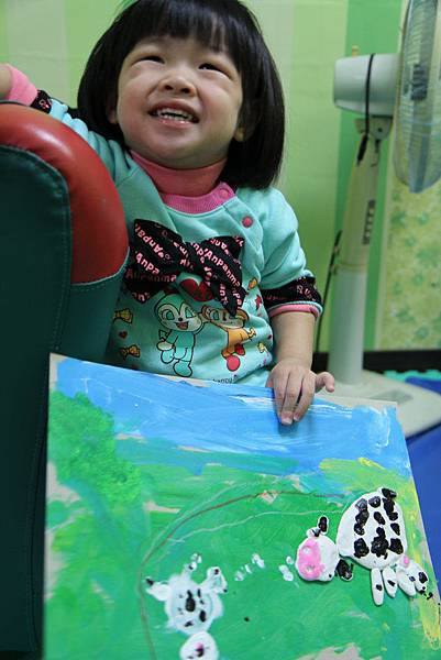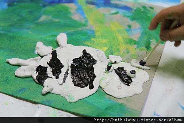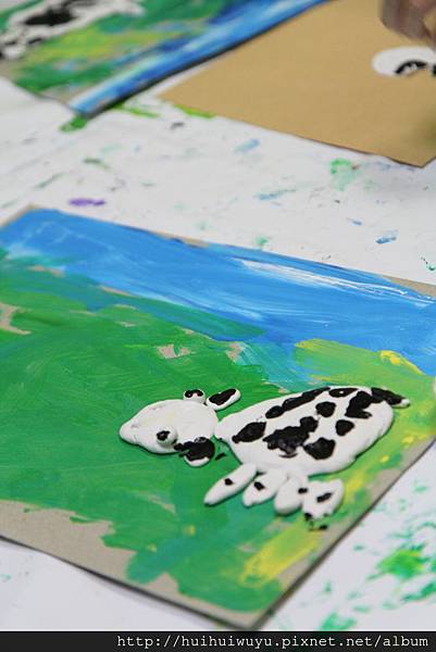 放上乳牛身體後 就要用棉花棒沾顏料畫班點