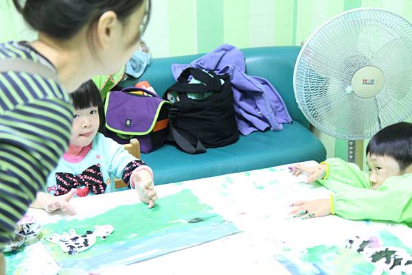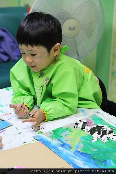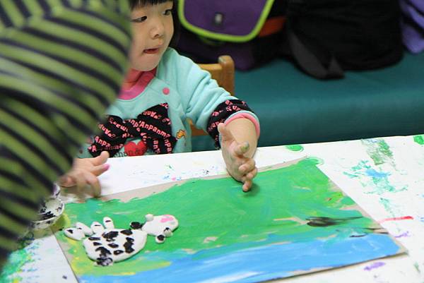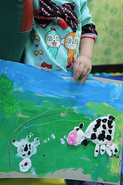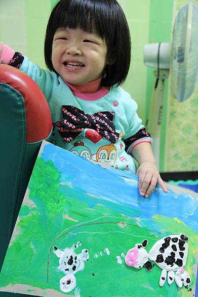 老師說可以用手 沾白色顏料 再畫出一隻 小牛~
