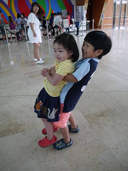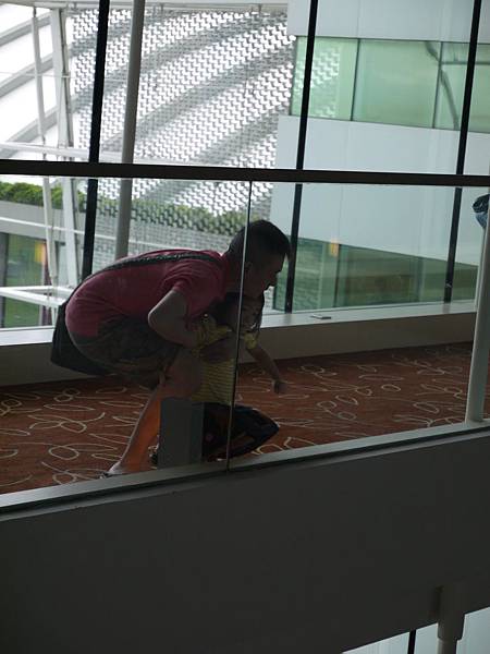 我們去飯店商場裡吃早餐!! ~~ (待續)... 有媽媽零亂的背影@@" 和很不願配合的小人