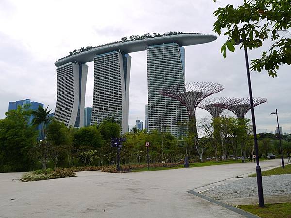 由三座樓高55層的平頂大廈組成,大廈頂部由號稱亞洲最大的Sands SkyPark (空中花園)連接而成。