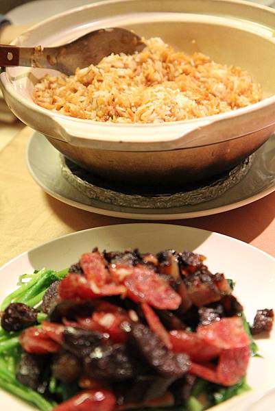 哇塞~ 臘肉一整盤 + 一大鍋的飯 光看這顏色就知道及格了!! 好香唷....