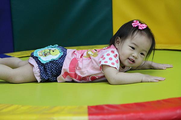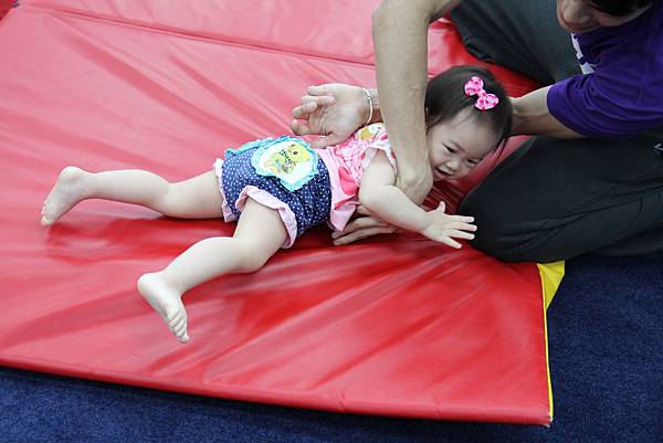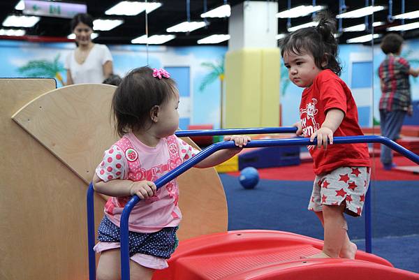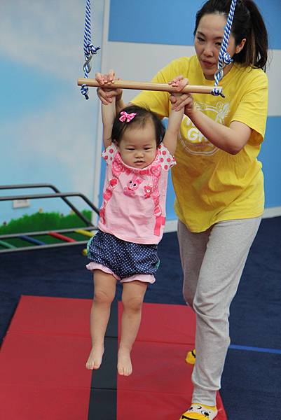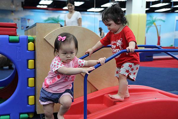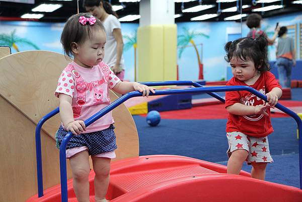 原本打算兩歲再去體能課~ 但每次跟著姐姐去 妹妹不能進去 就覺得好可憐~