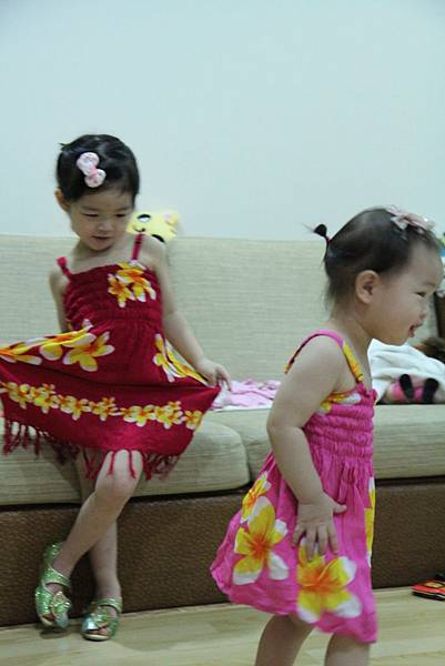 倆姊妹穿得不亦樂乎~ 搖頭擺尾的!