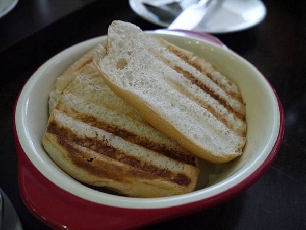 這裡的麵包 是用爐火稍微烤一下 口感有點酥脆 有點像餅乾