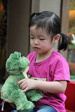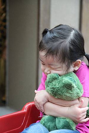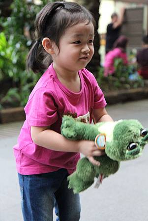 姐姐挑了一個青蛙娃娃 買到之後又親又抱的