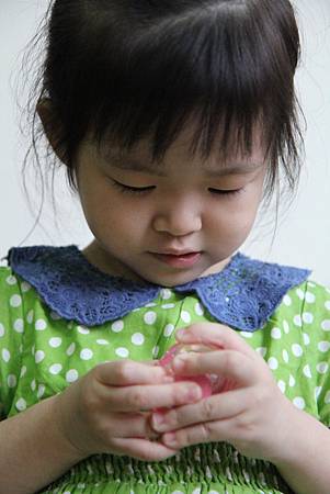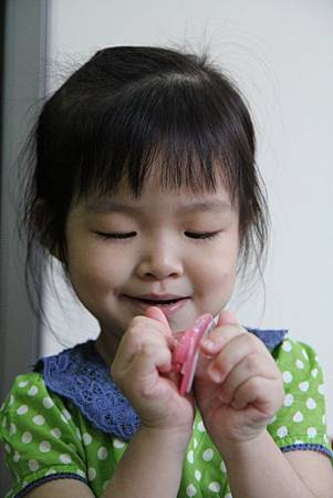 她稍微可以了解 就願意不吃 但是 她還是很愛她的嘴嘴 依然是要拿在手上 或放在身邊