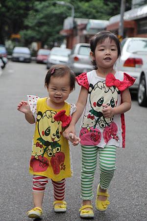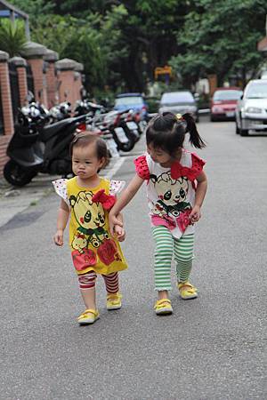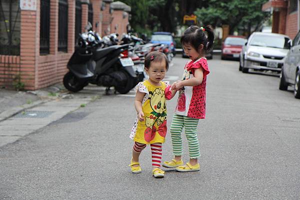 拍到姐姐這張嘴巴張好大的模樣~ 她一定是在跟妹妹說 我牽你 好不好 "ㄚ" ~ !!