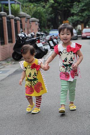 妹妹 凡事都一直說 "會 會 會" 她想自己來 不過她很喜歡姐姐 最後還是願意給姐姐牽~