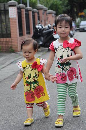 今天幫兩姐妹穿上姐妹裝 忍不住還沒到mygym就開始拍個不停~ 真可愛