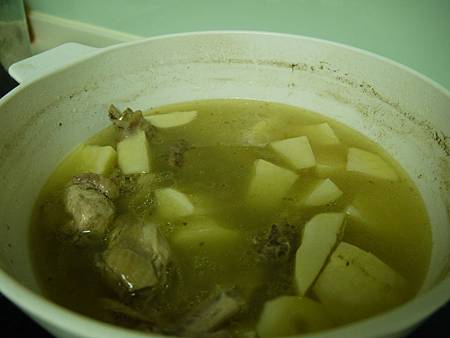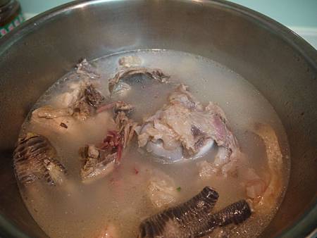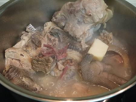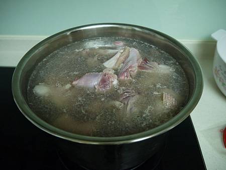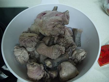 (查了一下前輩的筆記: 血水去的乾淨 要用"跑活水", 也就是將骨頭都丟入大鍋裡