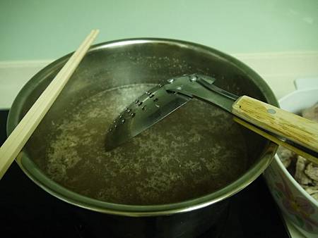 7. 加入高湯或水 (撈一下我隔壁的那鍋 你看看! 乳白色~)