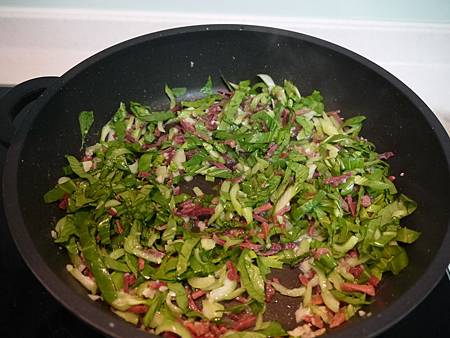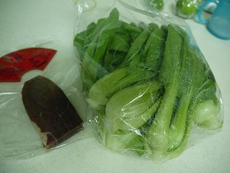 1.青江菜 數把 金華火腿半片 或香腸 臘腸 叉燒肉等~