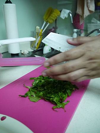 4.青江菜要分葉子 和 莖 來切絲