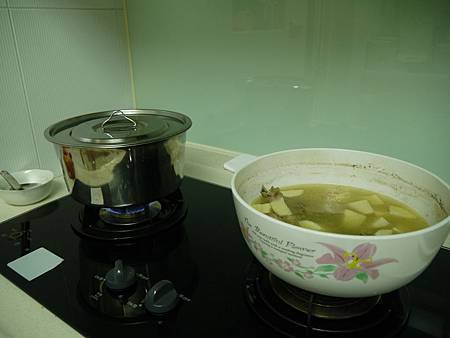 我習慣把竹筍再另一鍋先燙一下(10分鐘) 把菜味煮掉 才不會整鍋湯都是菜味~