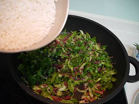 今天有新菜色 (青江菜飯) 煮起來個外興奮~