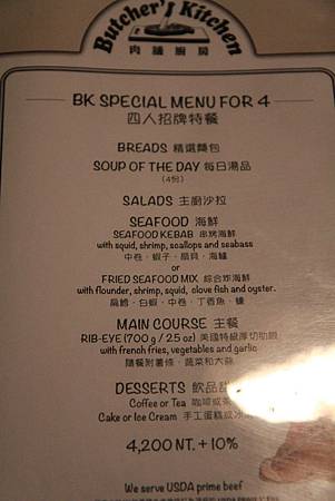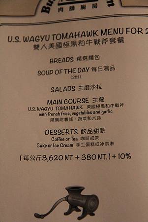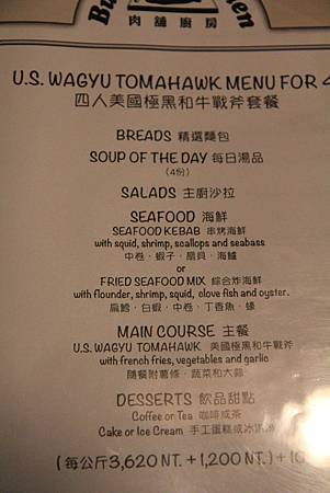 我們是為了 戰斧牛排 而來的 所以也沒什麼研究菜單 直接請服務人員介紹