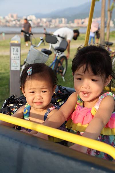 在等車的時候 兩個小的要坐這個電動小火車~