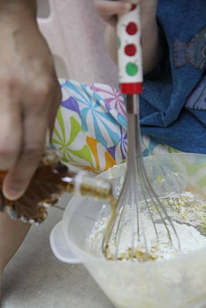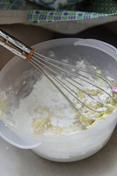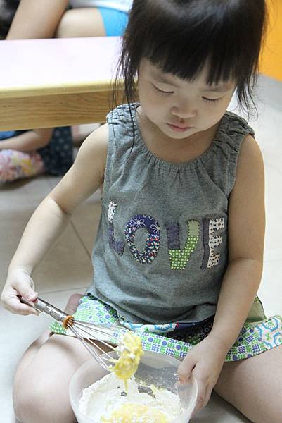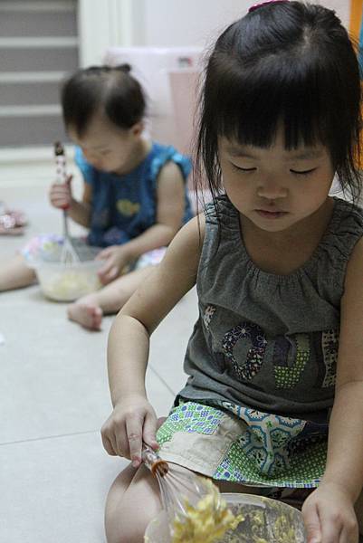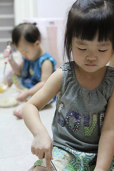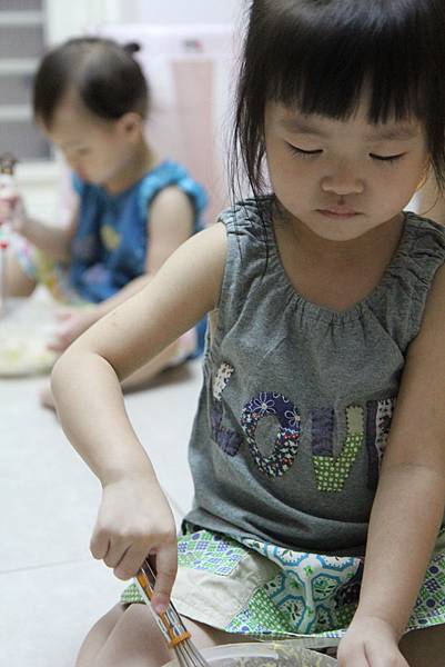 兩姊妹認真攪拌的模樣 真可愛~ 應該有5分鐘那麼久...