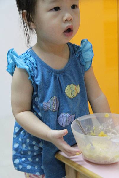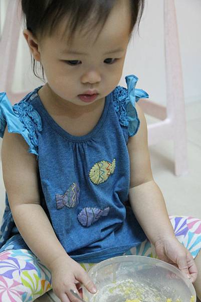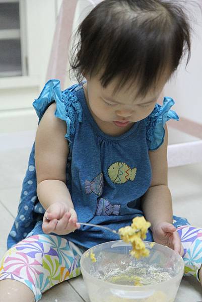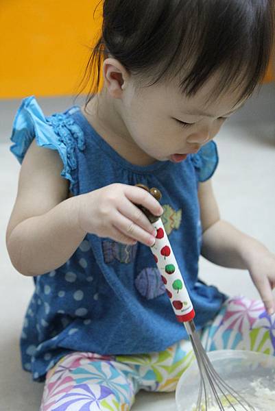 我因為有上課過程進度的壓力 不讓妹妹 一直一直 攪拌~ 於是 和諧畫面破局!!