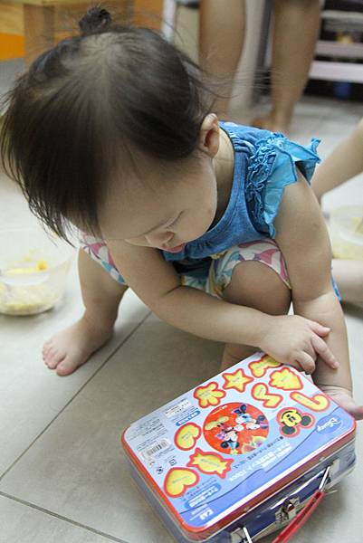 很努力的一次又一次的壓~ (其實我也不阻止 這不也是種手部運動訓練~ XD)