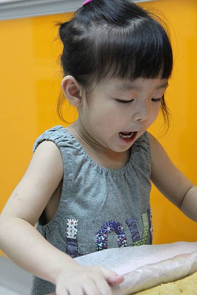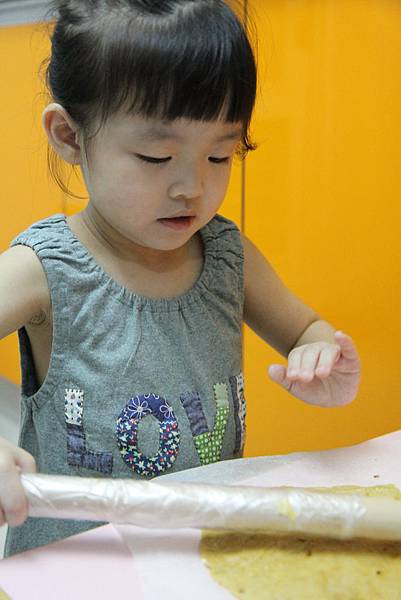 再來就是 桿麵糰 需要稍微一點巧勁 對妹妹來說 有點難度