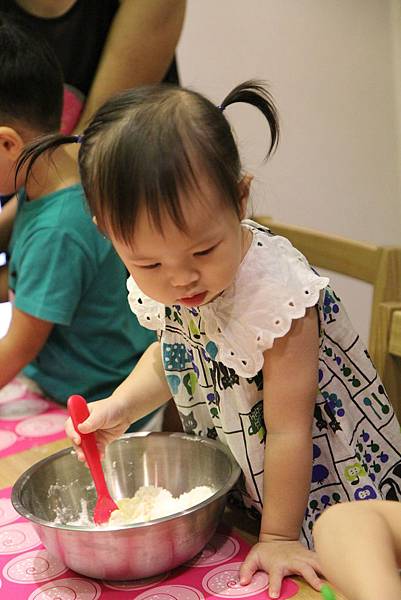 因為 在這次上課過程中 因為妹妹喜歡攪拌而不進行下一個壓模 和 桿麵糰步驟