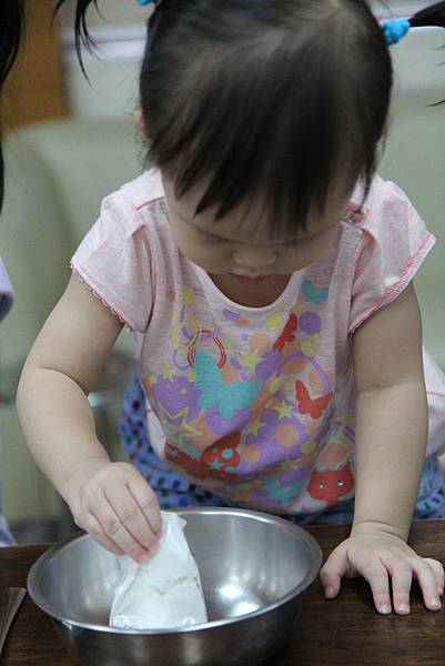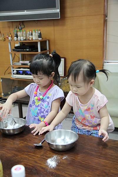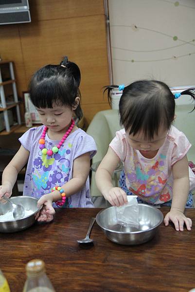 從粉狀 液態 再來變成固體!! 還可以入口呢~