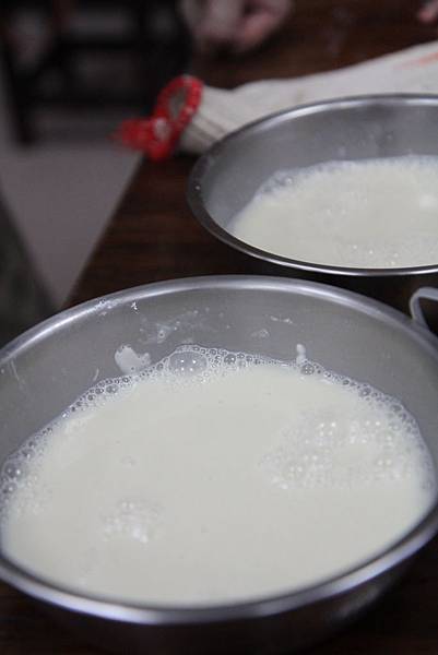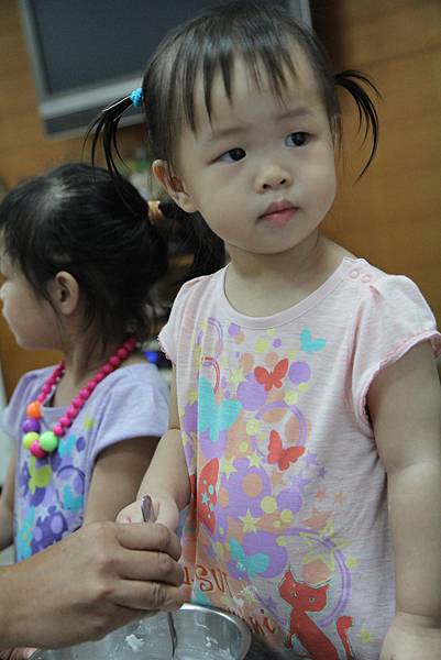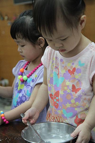光石灰粉+熱水 攪拌就攪拌很久 兩姊妹就拉了很久~