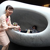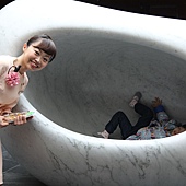 沒想到親切的阿姨竟然幫我把姐姐抱上去石頭洞裡~