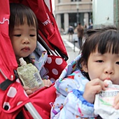 小孩吃了冰淇淋 就很high~~ 後來兩人開始在娃娃車上玩